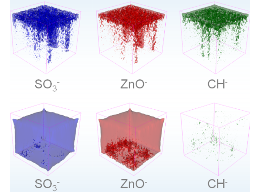 作者利用TOF-SIMS對(duì)鋅負(fù)極表面的SEI膜成分進(jìn)行了研究,揭示了其厚度,化學(xué)組成和空間分布。