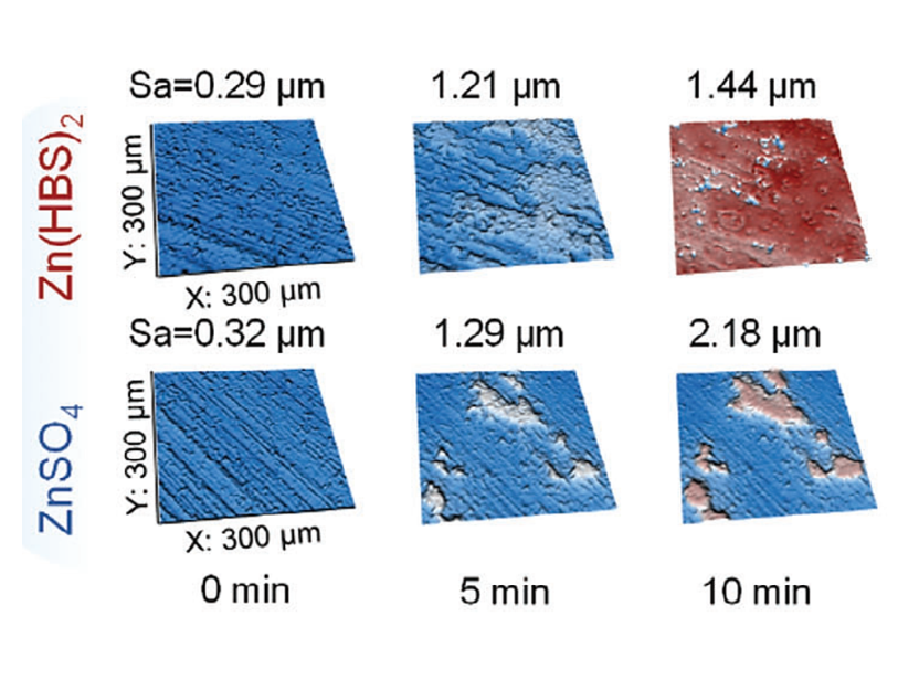 作者對(duì)鋅金屬負(fù)極進(jìn)行了界面修飾,通過原位監(jiān)測(cè)界面處的離子濃度分布,證實(shí)了特定修飾可以促進(jìn)鋅離子擴(kuò)散,從而避免鋅枝晶形成。